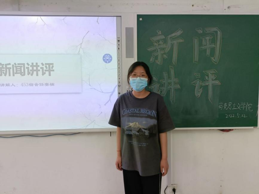 为培养同学们阅读新闻、分析新闻的能力,提高同学们的政治参与热情,提升同学们的思政专业素养,2022年5月22日,我院于1号教学楼A310教室举行了新闻讲评活动。参与本次活动的有马克思主义学院2021级思想政治教育本科班全体学生。