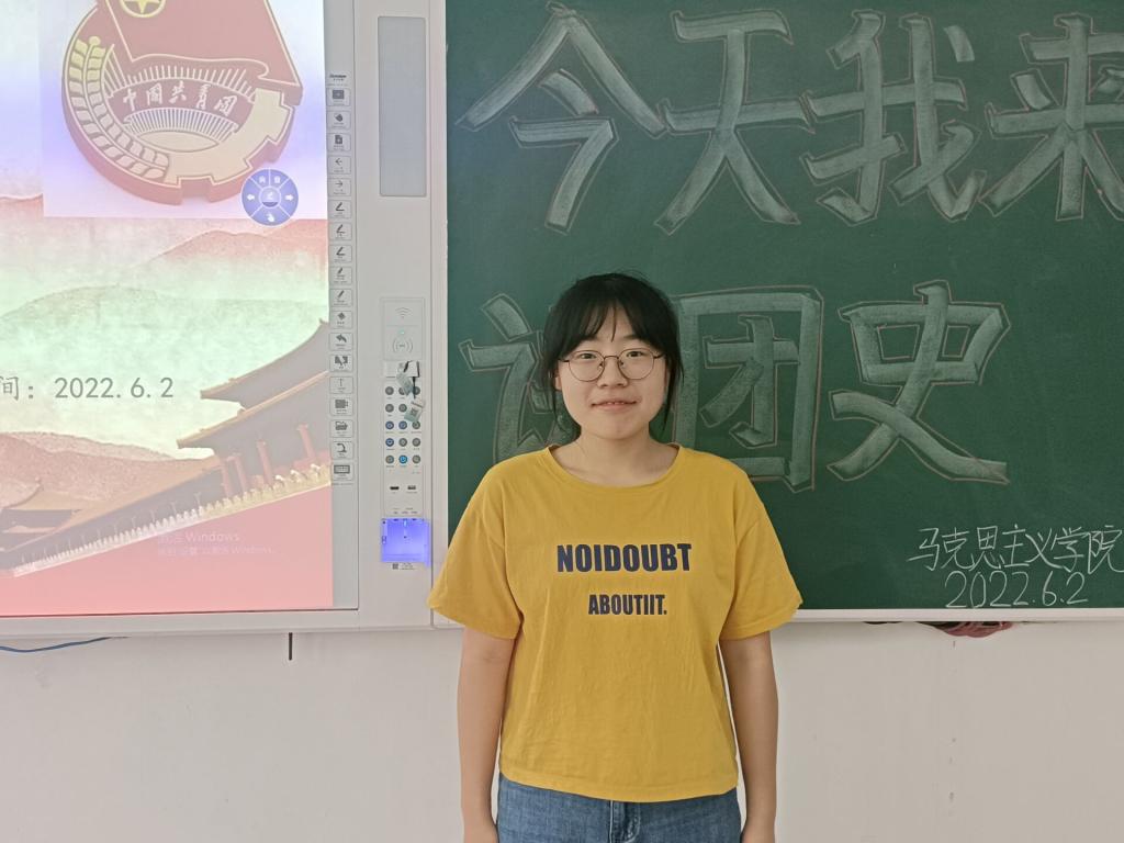 为纪念中国共青团建立100周年,增强同学们的团史学习意识,丰富同学们的团史知识,2022年5月30日至6月4日,我院学生于1号教学楼A310教室举行了《今天我来讲团史》活动。参加此次活动的有马克思主义学院2021级思想政治教育本科班全体同学和2020级部分同学。