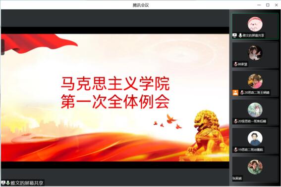 为提高马克思主义学院新冠疫情应急防控能力,保证学生返校工作顺利进行,确保全体师生安全返校,2022年8月17日,马克思主义学院于线上召开第一次全体学生例会。参加此次会议的成员有马克思主义学院团总支副书记王雅文以及马克思主义学院思想政治教育专业本科班全体学生。