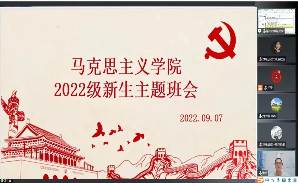 为贯彻落实学校疫情防控要求,确保2022级新生入学工作平稳有序开展,马克思主义学院于2022年9月7日通过线上的方式召开2022级新生主题班会。与会人员有马克思主义学院党委副书记毛雯、团总支副书记王雅文以及马克思主义学院2022级全体学生及家长。