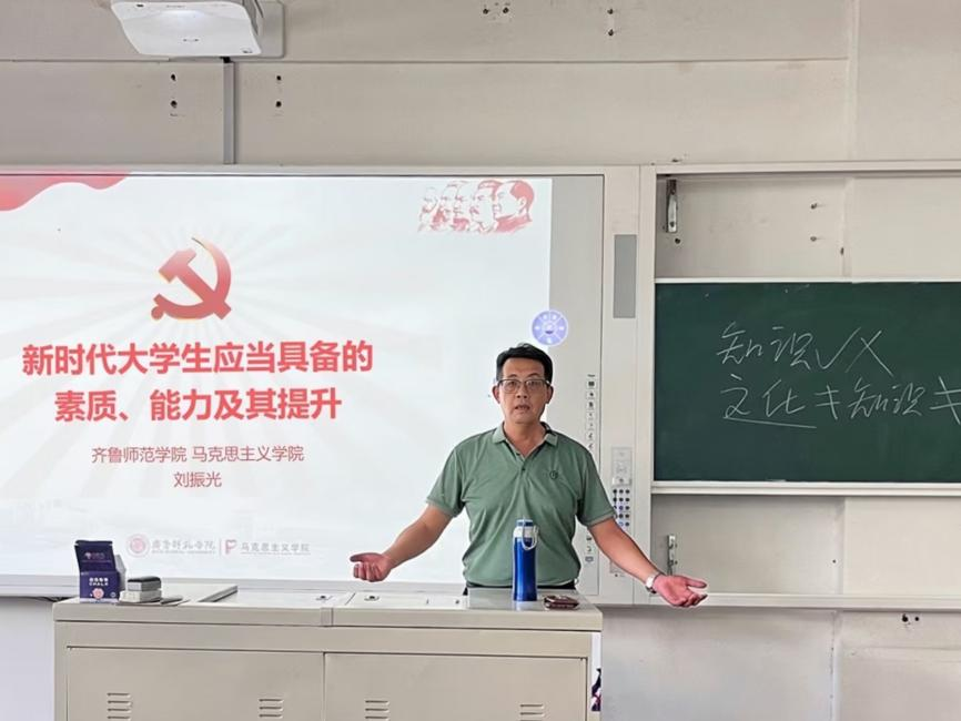 2022年9月18日,马克思主义学院刘振光教授在2号教学楼A207教室开展了以“新时代大学生应当具备的素质、能力及其提升”为主题的新生入学教育。参加本次活动的有马克思主义学院刘振光教授、党委副书记毛雯以及马克思主义学院2022级全体学生。
