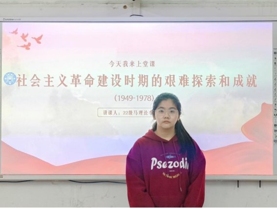 以史为鉴,开拓向前。刘馨琳、贺凤雪、高文等六位同学深入浅出地讲解社会主义建设时期我国在政治、经济、文化等方面取得的重大成就,辩证分析党在这一时期的失误与挫折。历史是最好的教科书,希望同学们始终坚持党的领导,以史为鉴,尊重规律,开创未来,为建设社会主义现代化强国而奋斗。