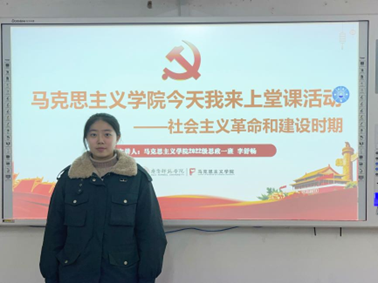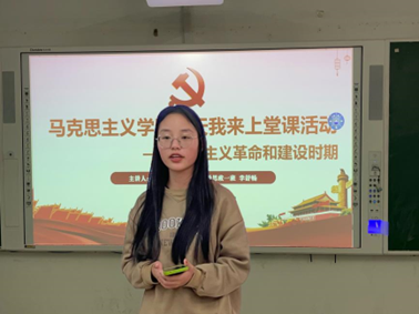 本周“今天我来上堂课”活动主要围绕社会主义革命和建设时期的重大事件展开,戚洪丽、李舒畅、朱璇、陈玥颖等四位同学为本周活动主讲人。