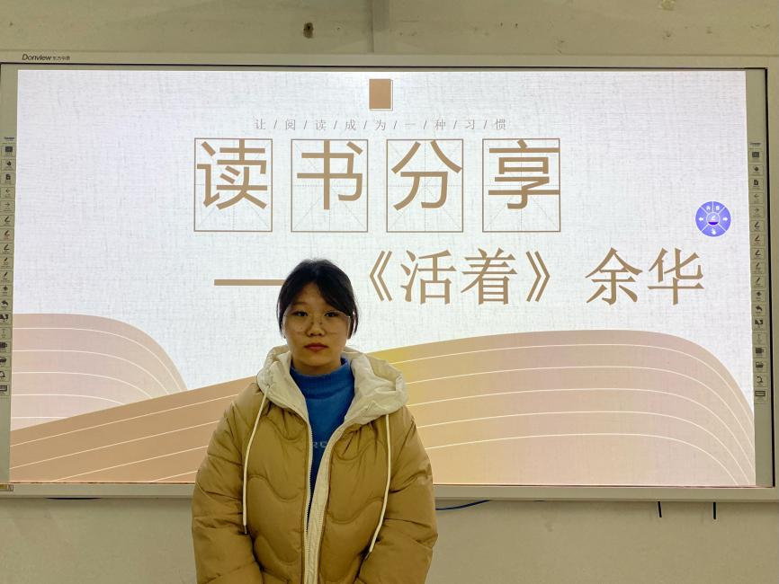 在本期读书节上,崔玉洁、张海宁、王文及三位同学分享了自己的读书心得。崔玉洁同学向同学们推荐了《活着》一书。“人是为了活着本身而活着,而不是为了活着之外的任何事物而活着。”她通过讲述书中的故事背景和人物情节启示同学们在生活中保持乐观心态,实现人生价值。