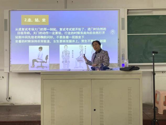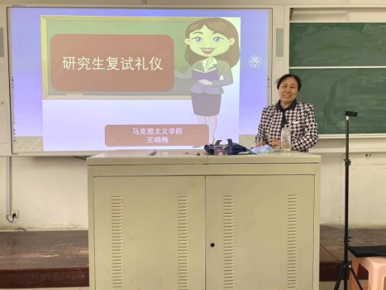 为更好地助力考研学子做好复试准备,3月16日下午,马克思主义学院于二号教学楼A202举办了“研究生复试礼仪”讲座活动,2019级复试备考学生参加了此次讲座。本次讲座由考研指导专家王晓梅教授主讲,马克思主义学院党委副书记毛雯参加活动。