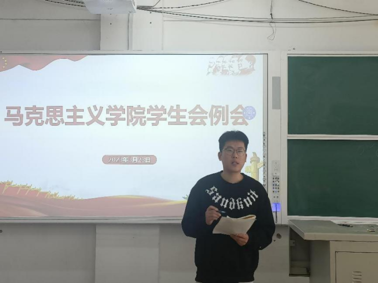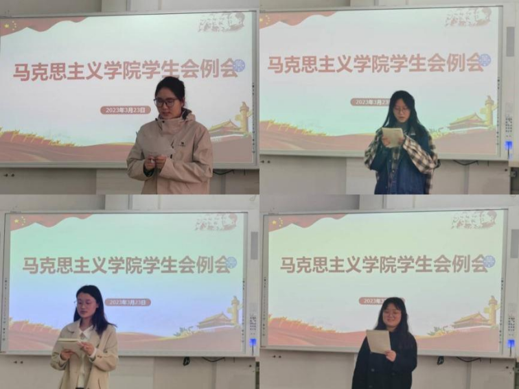 2023年3月23日,马克思主义学院在2号教学楼A207教室举行学生会工作例会。马克思主义学院党委副书记毛雯、团总支副书记王雅文及全体学生会成员参加本次例会。会议由马克思主义学院学生会主席高鑫主持。