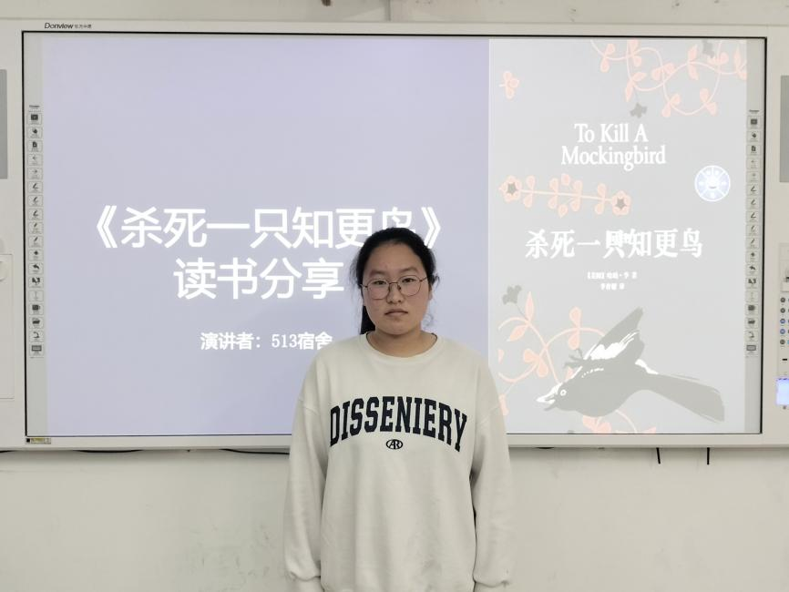 “真正的勇敢是你知道什么是正义,并坚持不做不义的事。”李婉晴同学推荐的书籍是《杀死一只知更鸟》。她通过介绍书中主人公反对种族歧视、坚持为被指控的黑人辩护的故事,激励同学们在逆境中历练风度,积累正气,坚持道德底线。