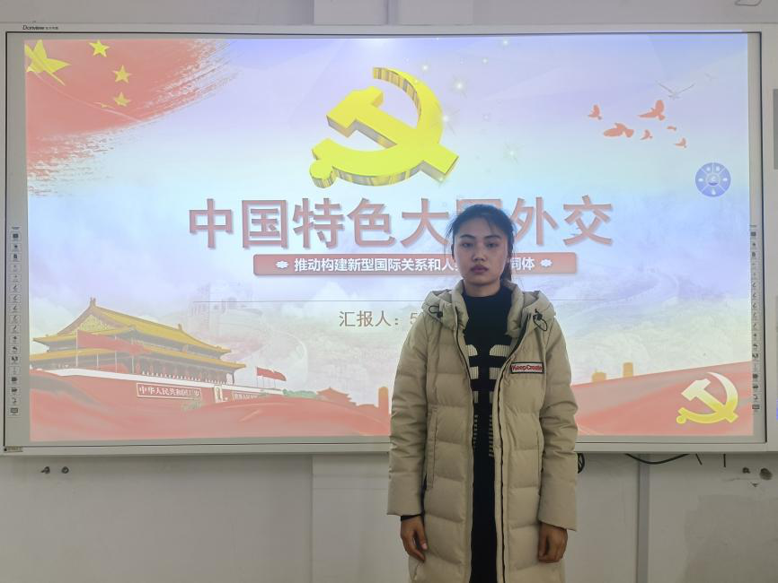党的二十大报告指出:“我们全面推进中国特色大国外交,推动构建人类命运共同体,坚定维护国际公平正义,倡导践行真正的多边主义,旗帜鲜明反对一切霸权主义和强权政治,毫不动摇反对任何单边主义、保护主义、霸凌行径。”本次政治学习紧扣党的二十大报告中的有关内容。岳炫孜、张嘉乐等四位同学为本次活动的主讲人。