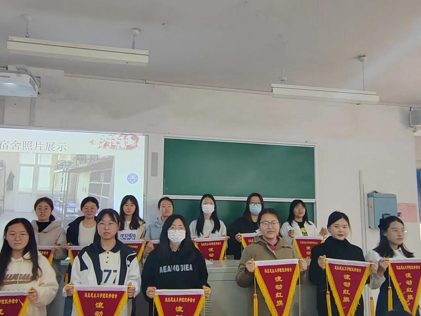 王雅文书记从安全防范和优秀宿舍表彰两个部分组织会议。首先,王雅文书记提醒同学们,当前正值传染病暴发期,同学们应当注意个人防护,同时在即将到来的运动会期间注意安全,做好赛前准备工作,以饱满的精神状态和良好的身体素质迎接运动会的到来。随后,王雅文书记总结了现阶段的卫生检查情况,为优秀宿舍颁发锦旗,勉励同学们再接再厉,争取更好成绩,创造更加舒适干净整洁的宿舍环境。