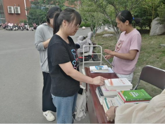 一册书籍一份情,一缕书香一片心,为做好毕业生教育,更好的引导毕业生回馈母校,2023年6月2日,马克思主义学院在一餐门口再次进行了毕业生图书捐赠活动。马克思主义学院2023届思想政治教育本科班全体毕业生参加活动。