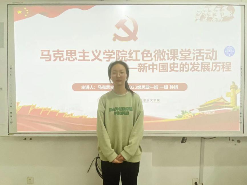 本周红色微课堂围绕中国共产党领导人民艰苦奋斗的新中国史展开,孙娟、孟姝含、武锦建三位同学担任本次活动主讲人。他们分别带领同学们回顾了在社会主义革命和建设时期、改革开放时期和中国特色社会主义新时代,中国共产党团结带领中国人民自力更生、锐意进取、迎难而上,中国以更加雄伟的身姿屹立于世界东方,中华民族伟大复兴迎来了前所未有的光明前景。同时,三位主讲人鼓励同学们传递好时代的接力棒,跑出更出色的成绩,成为中国特色社会主义的合格建设者和接班人,为实现中华民族伟大复兴而接续奋斗。
