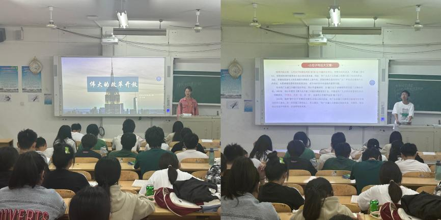 遇鉴斌同学带领同学们回顾了改革开放以来我国取得的举世瞩目的伟大成就。中国共产党带领中国人民坚持解放思想、实事求是、与时俱进、求真务实,形成了一系列光辉理论成果和制度成果,并奠定了全面建成社会主义现代化强国的雄厚发展基础,取得了丰硕实践成果。遇鉴斌同学的讲解增强了同学们对于“改革开放是党和人民大踏步赶上时代的重要法宝”的认同感。