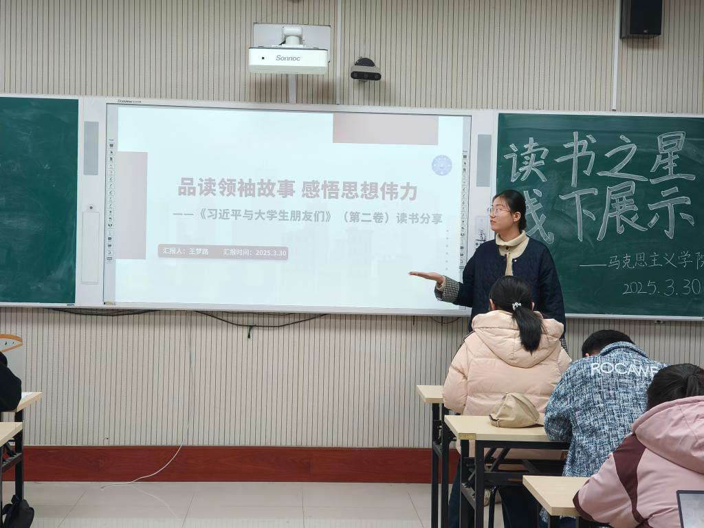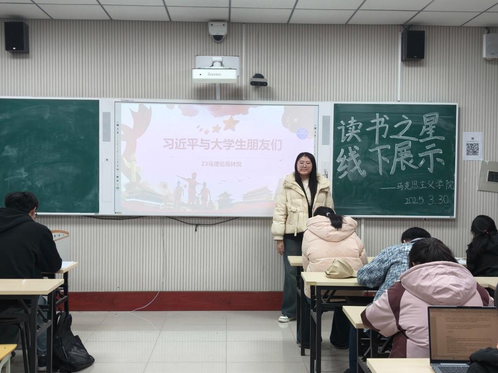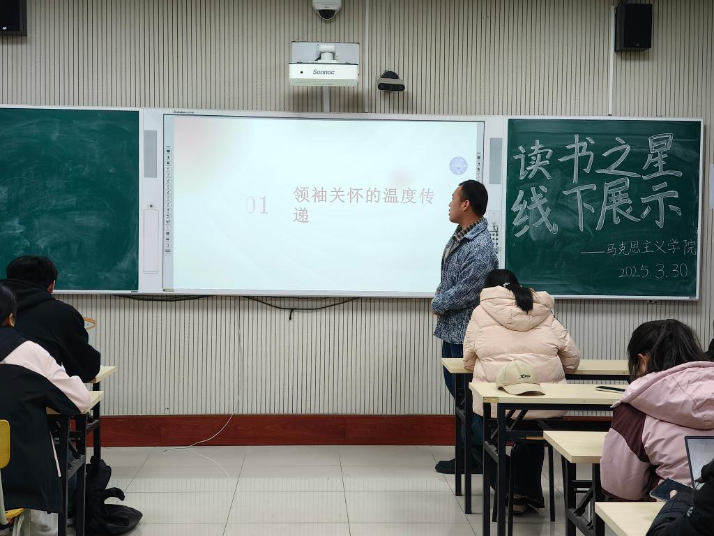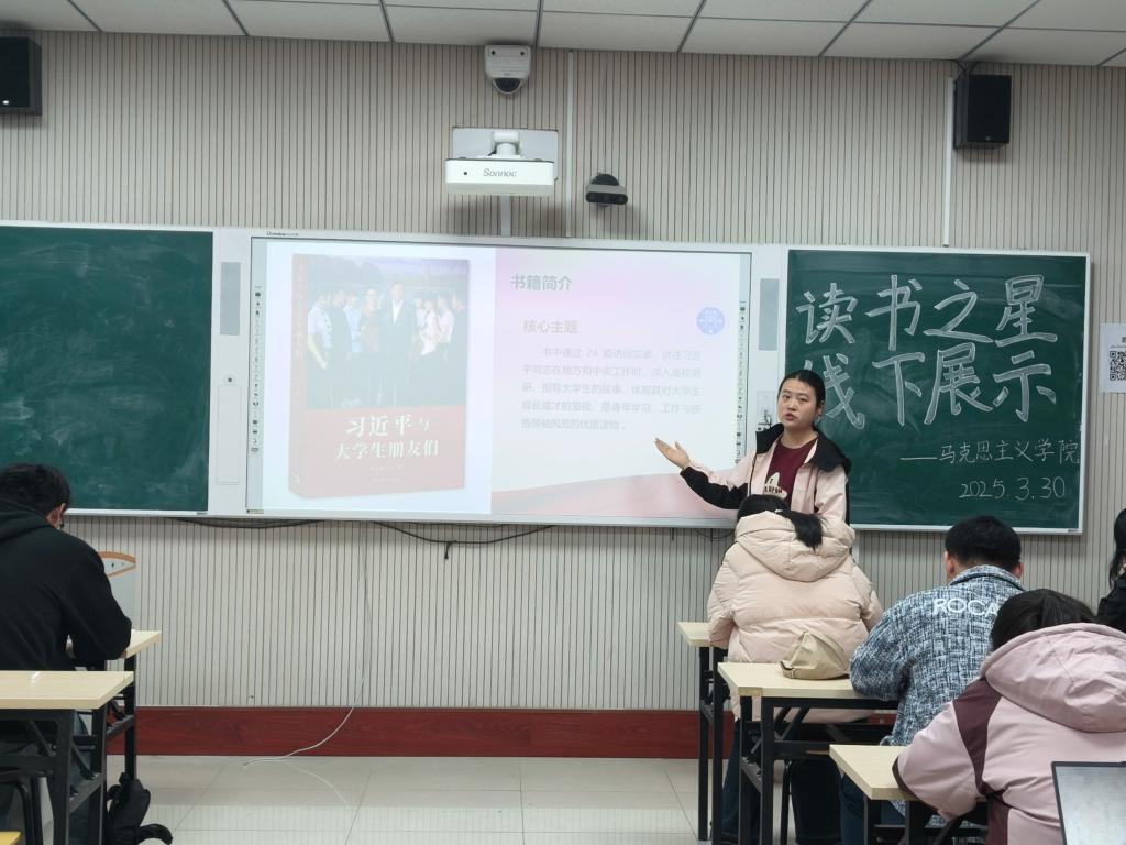 为深入贯彻落实 “个十百千万” 读书工程,助力书香校园建设,2025年3月30日,马克思主义学院在2号教学楼A312教室举行“个十百千万”读书之星评选活动暨“为中国式现代化挺膺担当——青春年少读好书”读书分享会,参加本次活动的有马克思主义学院2023级和2024级部分学生。