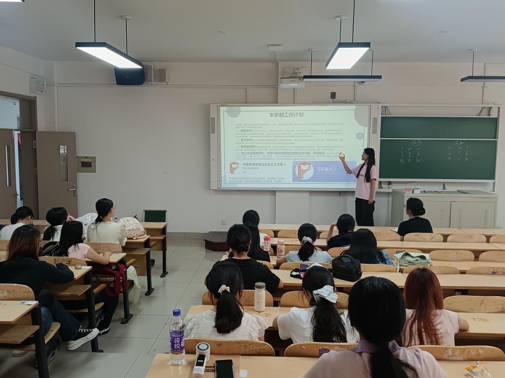 为推动新学期学院学生会工作有序开展,高效统筹迎新、部门建设及入学教育等核心事宜,2025年9月1日,马克思主义学院在2号教学楼A207教室举行2025-2026学年第一学期第一次学生会例会。马克思主义学院团总支书记王雅文、学生会各部门部长及副部长参加例会。