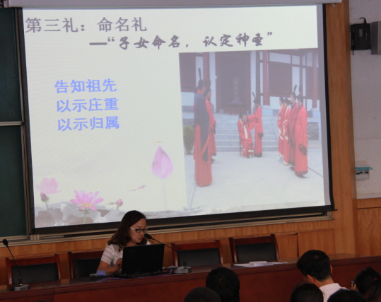 为弘扬中华民族传统文化,提高同学们对传统文化的认知程度,加强自我道德修养,树立自强不息的人生观和价值观,本学期,国学社利用周二下午的时间,举办了“聆听国学知识”系列专题讲座。到目前为止,已举办了 “孔子传奇人生”、“传统文化与现代生活智慧” 两场讲座。讲座中,教师们凭借自身深厚的国学底蕴引经据典,通过深入浅出、通俗易懂的讲解,使同学们感到受益匪浅,唤起了同学们学习国学的热情。
