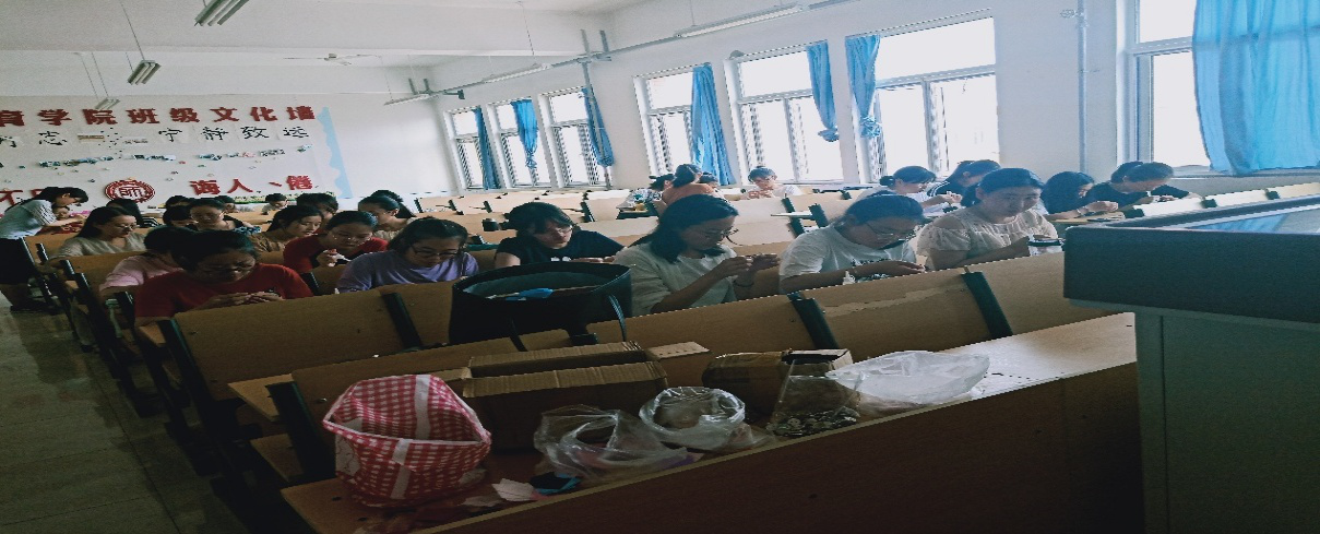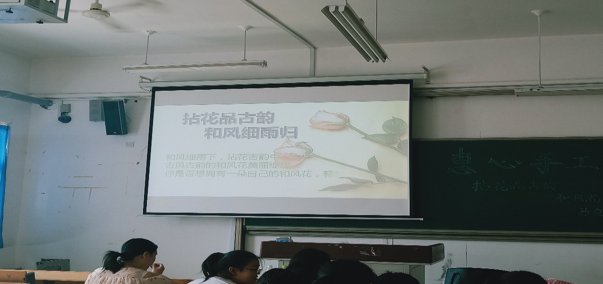 2019年6月16号下午,惠心手工坊在二教a 507教室中进行“拈花品古韵”的创意拈花活动,此次活动以教授社员为主,此次拈花活动有双层单层。惠心社手工坊社长蔡双云、副社长张秋月、秘书部部长原梦涵、宣传部部长李文欣、财务部部长丁鑫、手工部部长于子琪、通讯部部长董佳、外联部部长张天一以及全体社员参加了此次活动。