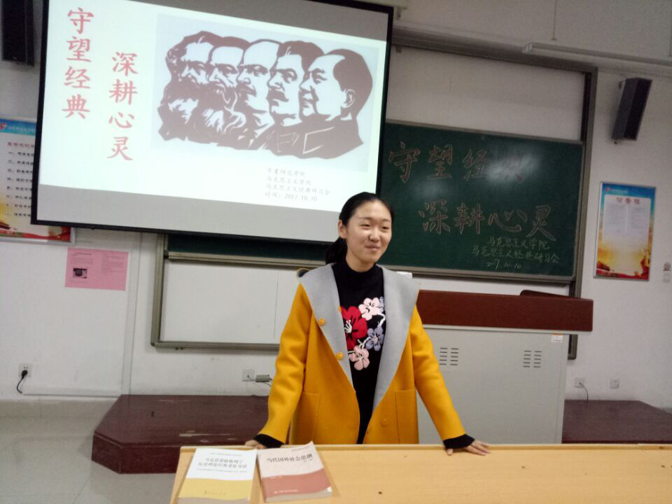 第三位由高婷介绍恩格斯的《社会主义从空想到科学》,此书阐述了科学社会主义由来以及基本理论。第四位上场的是周圆圆,该同学推荐了《论犹太人问题》,讲述了其中的经典段落及其感悟,告诉我们看书要有自己的思考。最后一位上场的是干事刘丙雯带来的《邓小平文选》,这本书主要是邓小平同志的重要文章、讲话,介绍了邓小平对革命的思想对学习研究党的历史有重要意义。至此,此次活动取得了圆满成功!