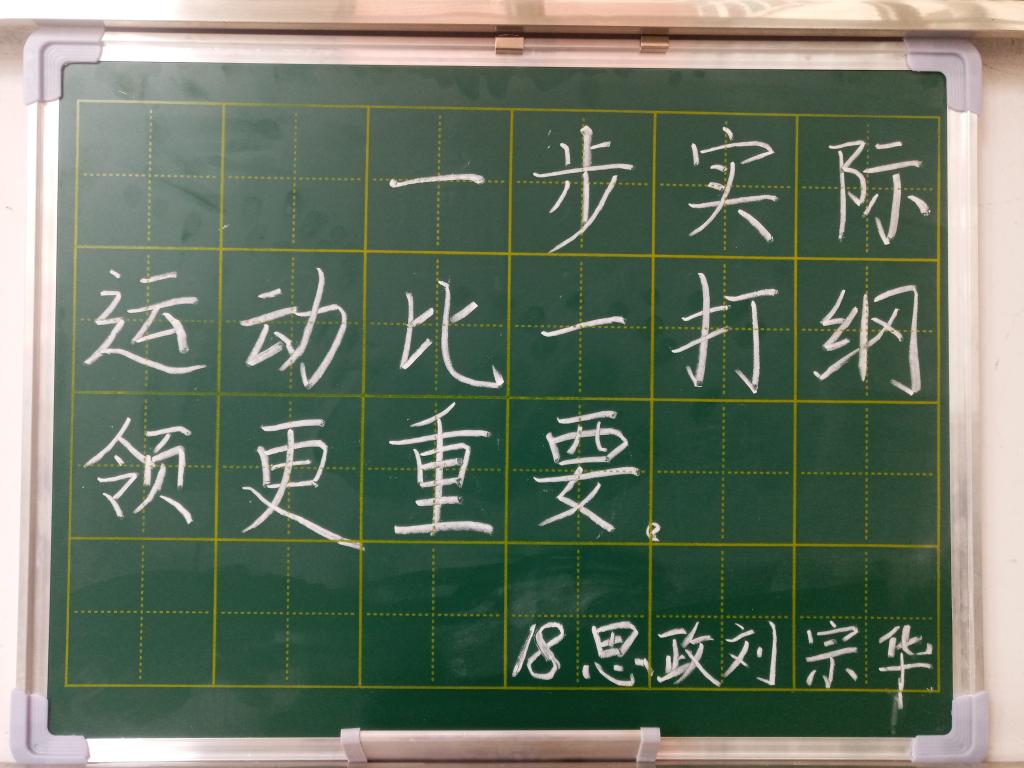 之后,各位成员在卢洪瀑社长的指导下,认真书写黑板字,纠正练字错误,社长来回走动以发现成员错误并及时纠正。