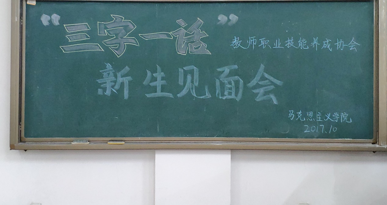 经过百团大战的激烈“争夺”,“三字一话”教师职业技能养成协会也迎来了一批新鲜的面孔和血液,为了欢迎新成员的到来,“三字一话”教师职业技能养成协会于2017年10月22日在二号教学楼A310教室举行了社团见面会。参加此次活动的有社团的主要干事以及加入“三字一话”教师职业技能养成协会的新成员。