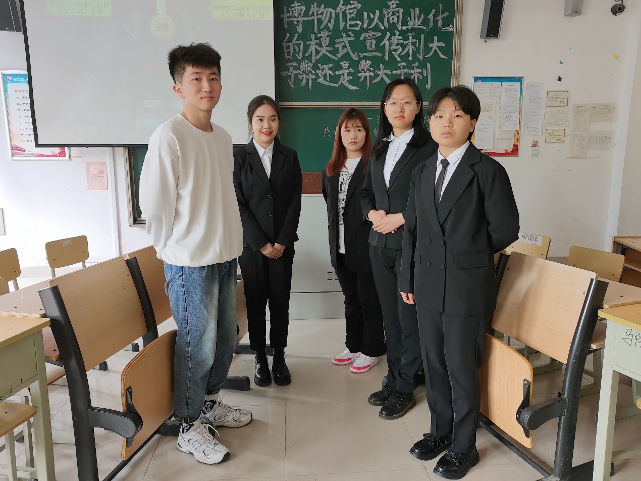 2019级校辩队成员丁帅、郭本慧、项志鹏、赵梓彤应邀担任大赛评委。正方所持观点是:“博物馆以商业化的模式宣传利大于弊。”反方所持观点是:“博物馆以商业化的模式宣传弊大于利。”