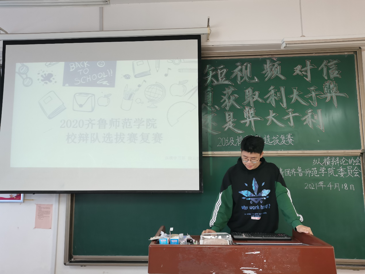 为了提高大家的默契程度,培养同学们的辩证思维,选拔优秀的辩论人才,2021年4月18日下午13:30在二教A310教室,举办了20级校级辩论队选拔赛复赛,本次选拔赛复赛的辩题为:短视频对信息获取利大于弊还是弊大于利。