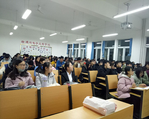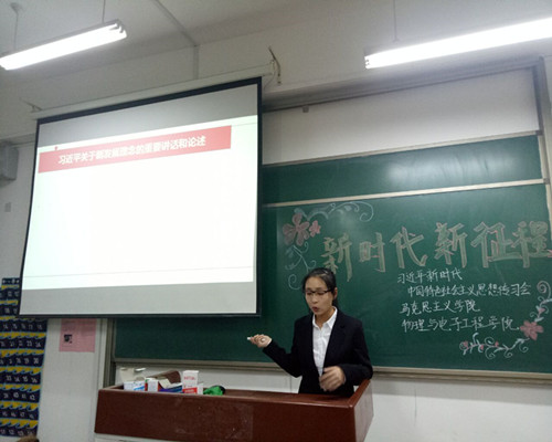 为学习贯彻落实党的十九大精神,马克思主义学院习近平新时代中国特色社会主义思想传习会以“新时代 新征程”为主题的宣讲活动于2017年12月4日在2号教学楼A212教室继续开讲,此宣讲活动第六站来到物理与电子工程学院。