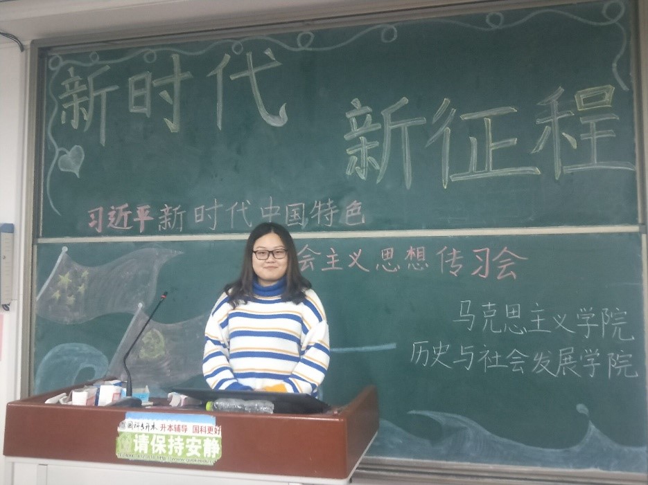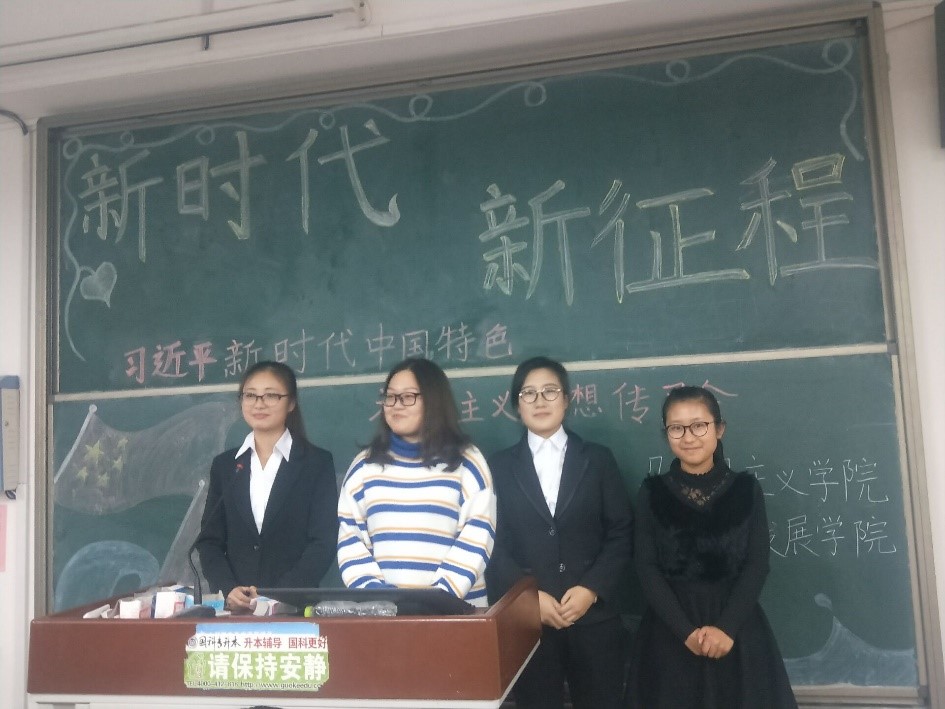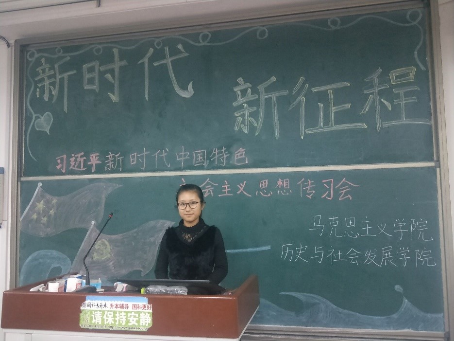 为促使大学生深入学习宣传贯彻党的十九大精神,2017年12月6日,习近平新时代中国特色社会主义思想传习会和马克思主义学院来到了历史社会发展学院进行了以“新时代,新征程”为主题的十九大宣讲活动。本次宣讲活动在2号教学楼A207教室进行,参与本次宣讲活动的有马克思主义学院习近平新时代中国特色社会主义思想传习会会员和历史社会发展学院学生。