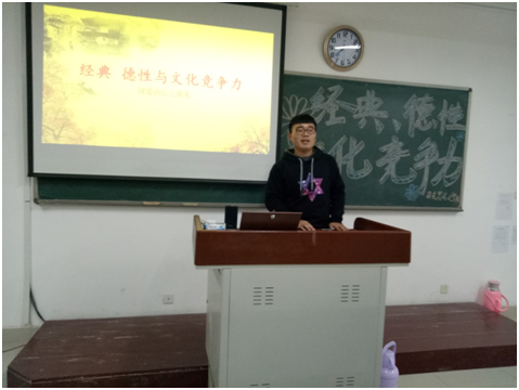 本次活动以自由讨论为主。活动开始,同学们便对本次主题展开了激烈的讨论。活动中同学们积极发表了对本次国是讲坛的看法并表达了自己的理解与感悟。同学们就经典、德性与文化竞争力这三方面各抒己见:在经典方面,同学们再一次理解了经典就是具有典范性、权威性、经典不朽的万世之作,经典的存在为后世优秀作品的创作奠定了基础;在文化方面,同学们认为在当代社会发展中文化的地位愈来愈重要,越来越成为影响国家竞争力的重要因素;但对于德性,同学们却有着不同的声音,有的同学认为德性是内心深处的那份善良,也有的同学认为德性是人的道德素质,同学们不同的见解为这个词做了一个更为全面的诠释。