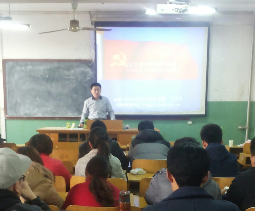 王教授按照“1+4”的逻辑框架,从坚持和发展中国特色社会主义和“四个全面”战略布局五个层面对习近平总书记重要讲话精神进行了深入分析和科学阐发。王教授的讲课内容丰富,紧贴时事热点,既有理论深度又通俗易懂,深受师生喜爱,为同学们深入理解和领悟新一届中央领导集体在新的历史时期治国理政的新理念和新思路,进一步坚定中国特色社会主义自信提供了有益指导。