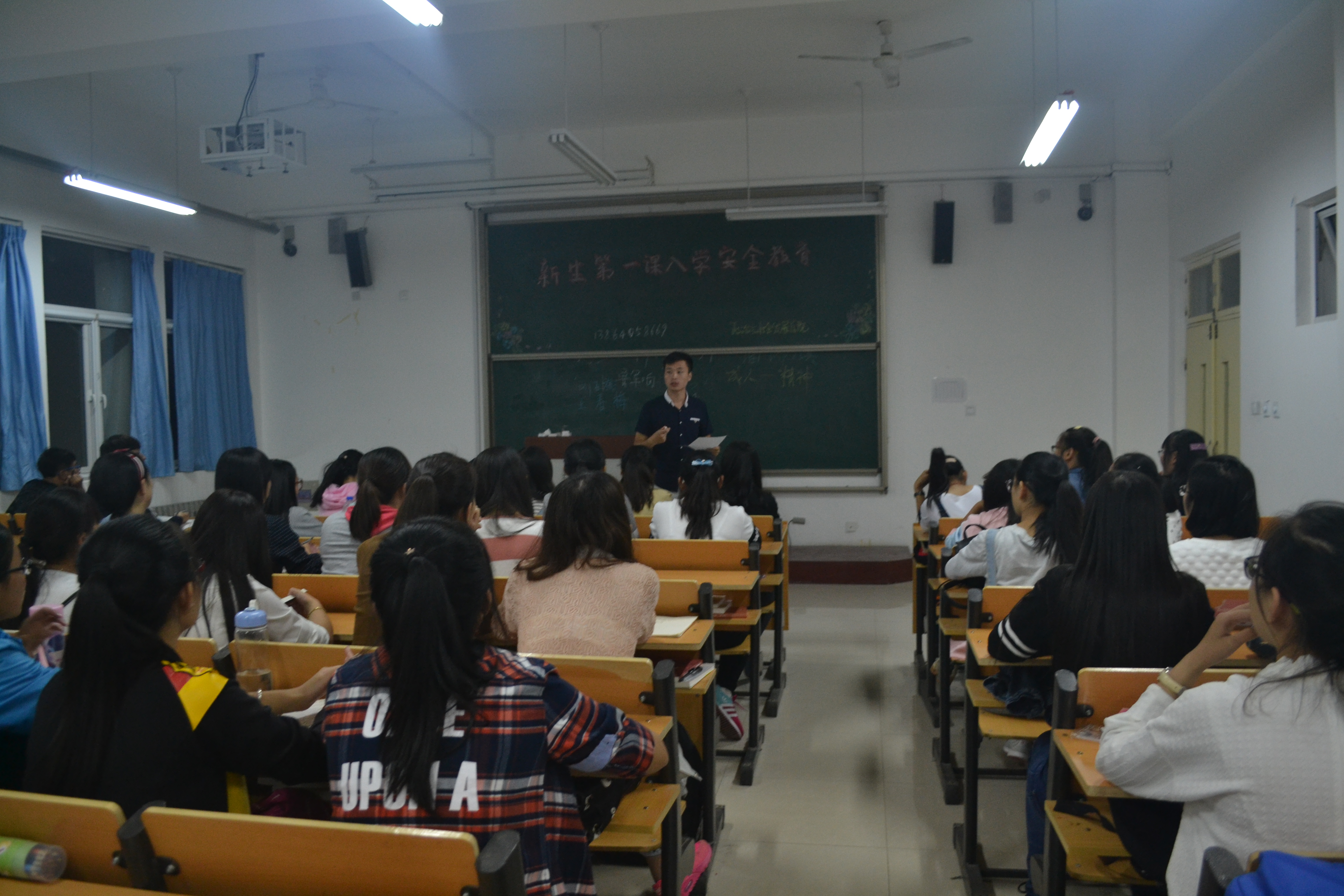 9月12日晚上七点,我院思想政治教育、历史学及社会工作三个专业新生在二教A501、A503及A505进行了新生入学系列教育。此次新生入学系列教育由辅导员王雅文老师、学生会副主席邹凤移、纪检部部长杨一波进行讲解,15级全体新生参加。