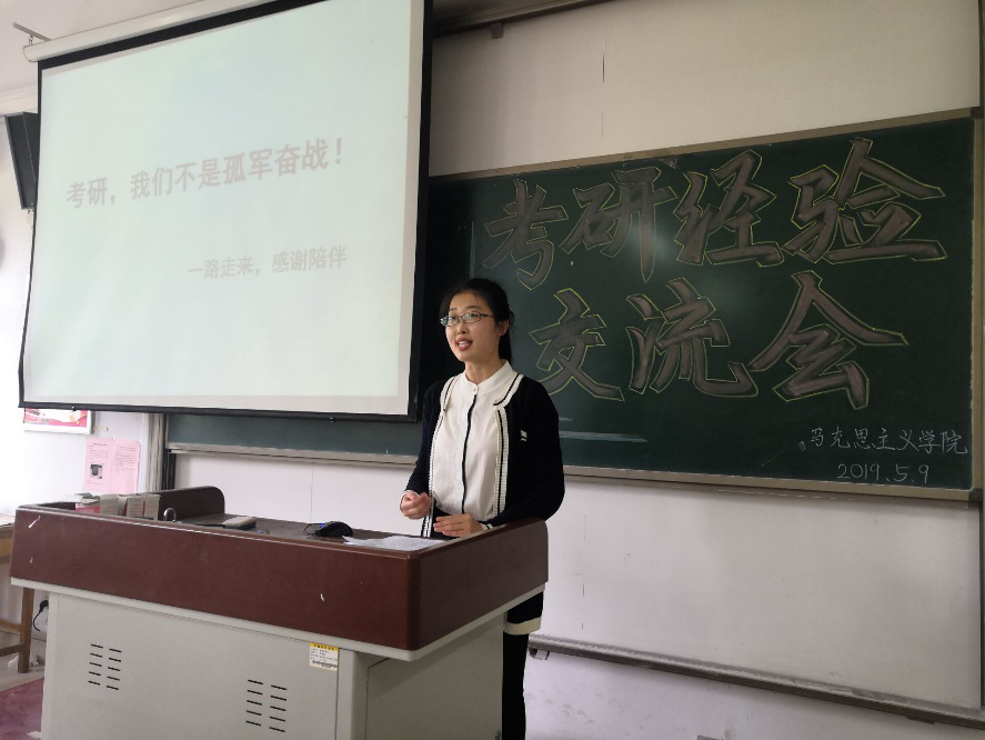 为了让有考研目标的同学们获得更多的考研经验,寻找到能够合作共进、携手并行的研友,2019年5月9日下午,马克思主义学院携手外国语学院在二号教学楼a310教室共同参加考研经验交流会活动,参加本次活动的有马克思主义学院团总支副书记王雅文老师、外国语学院辅导员倪冉老师、主持人许畅同学、八名分享考研经验的大四学长、学姐,以及马克思主义学院和外国语学院有考研意向的同学们。