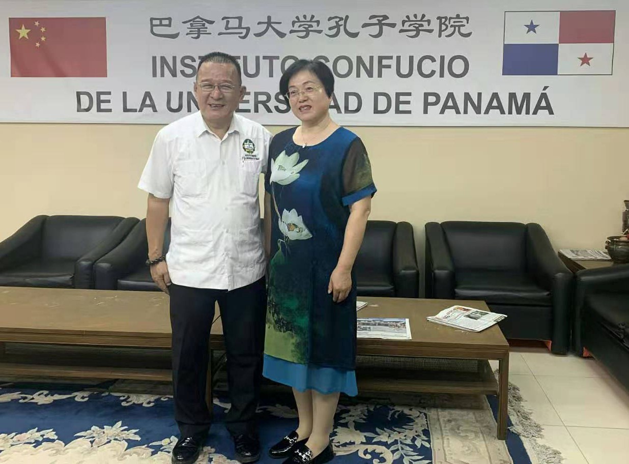 在考察访问巴拿马大学孔子学院期间,与巴拿马大学孔子学院的院长和教师进行了座谈,深入了解了巴拿马大学孔子学院的课程设置、教学模式、管理方式、学生来源、教学环境、学生反响等情况,并与外方院长巫俊辉先生和中方院长董杨女士分别合影留念。目前,巴拿马大学孔子学院正式学生已有700余人,学员主要以巴拿马人为主,也有周边国家暂居在巴拿马的拉丁美洲人,比如哥伦比亚人、委内瑞拉人、古巴人等,年龄跨度从4岁到80岁不等。巴拿马孔院对所有教学点实行统一管理、统一收费、统一派遣教师,这确保了孔院强有力的“自我造血”能力。自成立起,孔院积极创新教学方法,推动“汉语+职业培训”的教学模式。根据和巴拿马酒店联盟的协议,去年首先在威斯汀酒店开设了酒店汉语课程。从本学期开始,巴拿马孔院开始在下设教学点国际文化中小学的必修课中,鼓励教师尝试沉浸式教学法。教师们在教学中加强实用性,从学语音开始就结合词汇的实际应用,让学生尽快学会基本的日常词汇和会话,从而更容易产生学习成就感。现在,孔院还开设了武术、书法、太极班等课程,以便让当地民众更多地了解中国文化。
