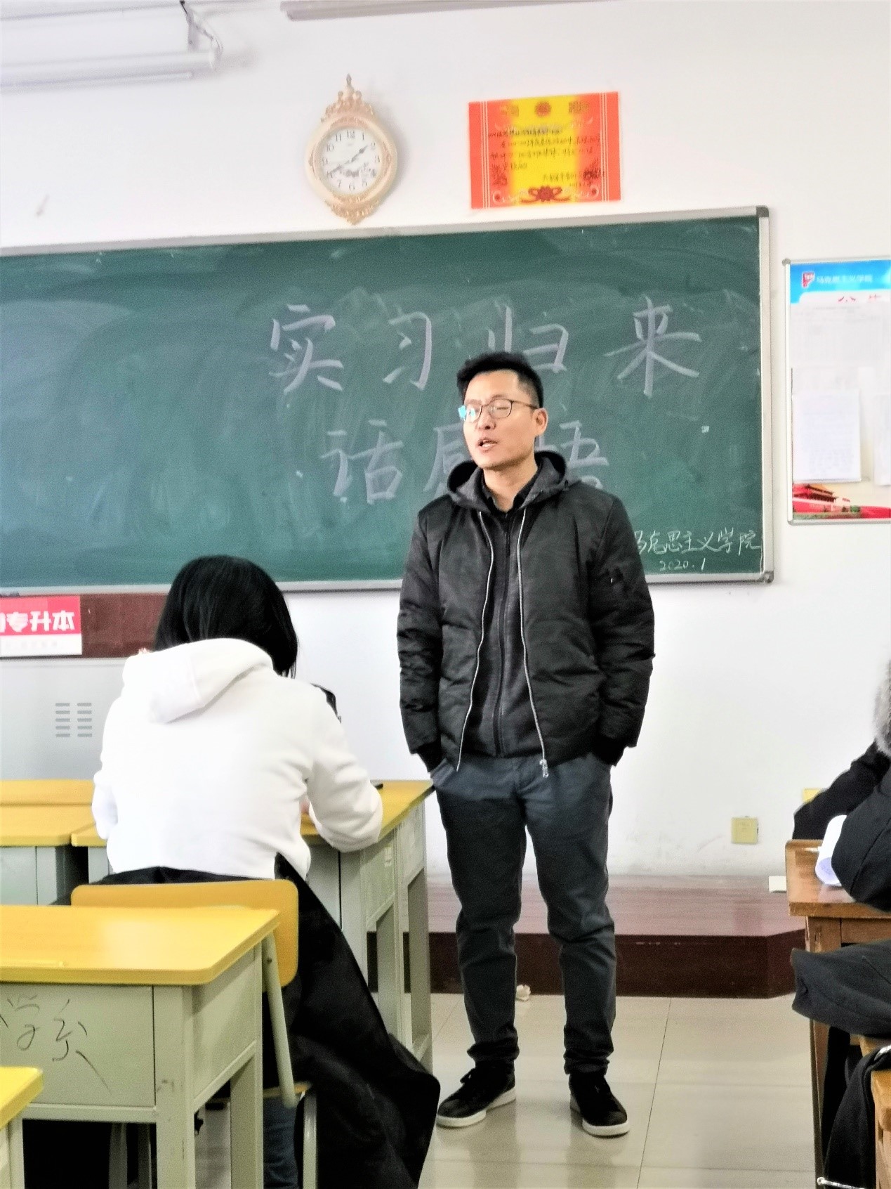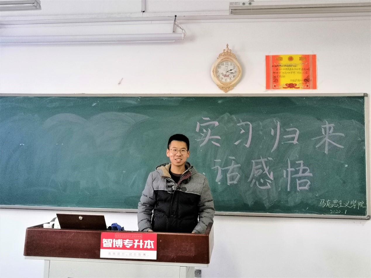 近期,我院2017级思想政治教育本科班同学实习支教任务圆满结束,并按时返校。2020年1月8日,我院在2号教学楼A308教室举行了“实习归来话感悟”活动,以此为同学们提供展示支教收获的平台,为实习生活画上精彩的句号。参加本次活动的赵欣老师、于增茜老师、王嘉玮老师和2017级思想政治教育本科班全体同学。