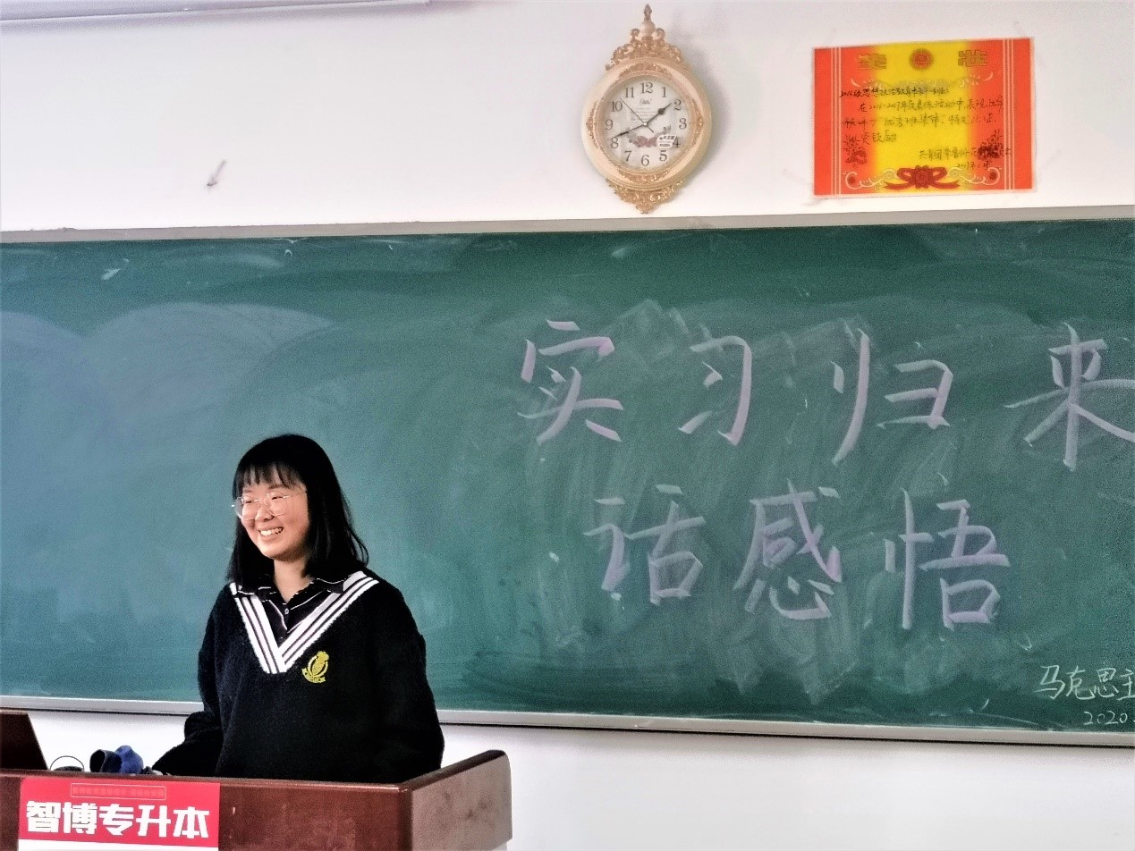本次实习归来话感悟的主要内容有:同学们分享了四个月来行走在教学第一线的一些观察和收获;对于不同学校或严苛或独特的不同制度的学习体会;对于酸甜苦辣的生活的调侃;对于当地风土人情的感受;对于教学过程中遇到的迷惘困惑,以及不断努力下的进步与感动。