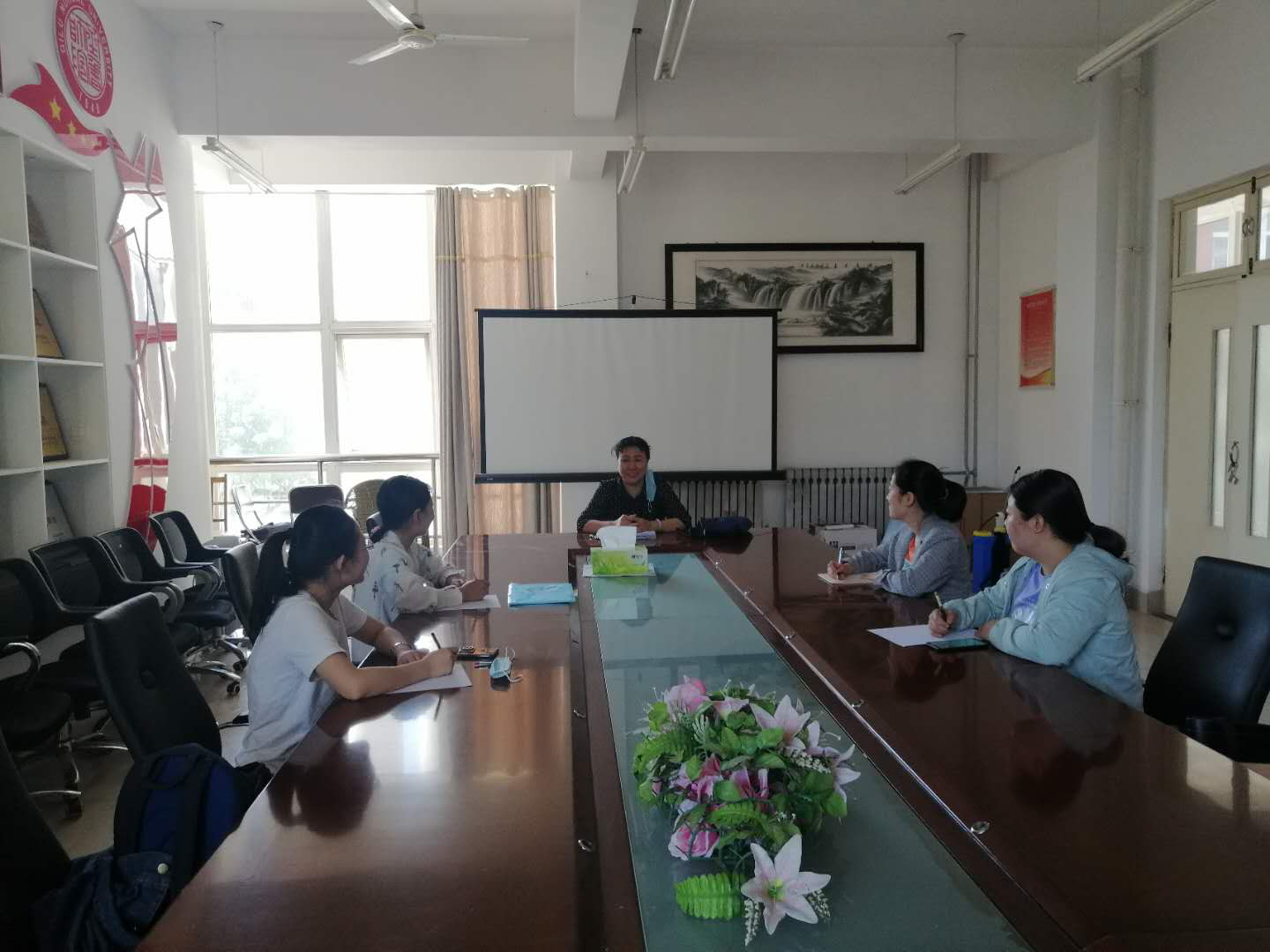 首先,党总支书记王晓梅对第一批返校学生表示热烈欢迎,并祝贺返校的4位同学顺利通过研究生考试,向同学们询问了研究生复试的具体情况,同时分析了2016级考研同学一志愿复试通过状况和调剂状况。
