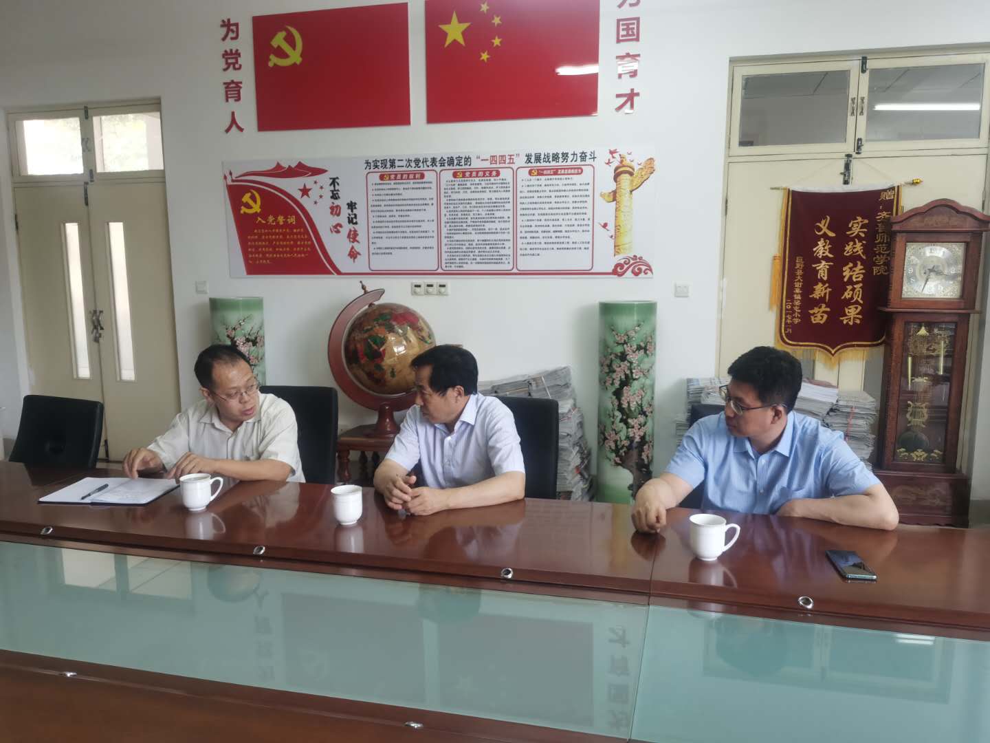 7月14日下午,省委教育工委有关部门领导来我校调研基层党建工作。在听取学校有关汇报后,省委教育工委学校组织处副处长彭洪文来到马克思主义学院就师生党支部建设情况听取汇报并进行调研,学校党委副书记刘宝君、党委组织部部长李伯伟陪同调研,马克思主义学院党政班子成员、教师党支部、学生党支部有关人员参加调研活动。