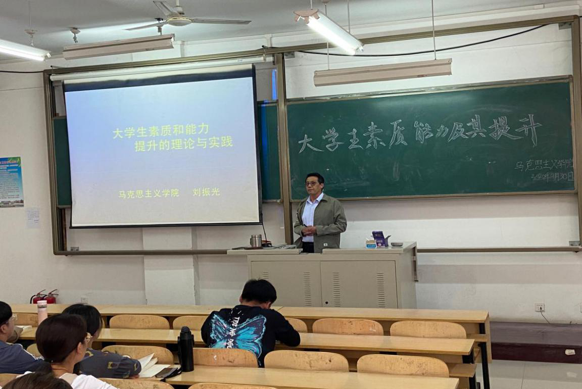 为提高20级新生的科学文化素质与实践能力,我院院长刘振光教授于2020年9月30日在一号教学楼A111教室开展了《大学生素质和能力提升的理论与实践》为主题的课程。2020级思想政治教育本科班全体学生参与了本次课程。