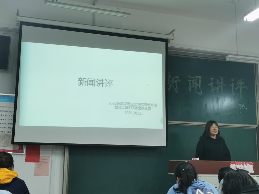 为提高同学们对于时政新闻的关注度,提升同学们的思想政治能力素养,我院于2020年10月11日在二号教学楼A310教室举办了新闻讲评活动。参与本次活动的有2020级思想政治教育本科班全体学生。