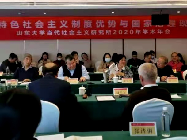 11月7日,由山东大学当代社会主义研究所主办的“中国特色社会主义制度优势与国家治理现代化”学术年会在济南召开,来自中共中央对外联络部、中共中央党校(国家行政学院)、中央党史和文献研究院、中国社会科学院、北京大学、中国人民大学、中国社会科学院大学、复旦大学、华中师范大学、郑州大学等国内高校和科研院所的100余位专家、学者参加会议,山东大学博士生导师、当代社会主义研究所所长崔桂田教授主持开幕式。我校马克思主义研究中心主任、国家二级教授陈海燕参加会议并以“世界‘新社会主义’思潮与科学社会主义的新发展”为题作主题发言,在会上引起积极反响。