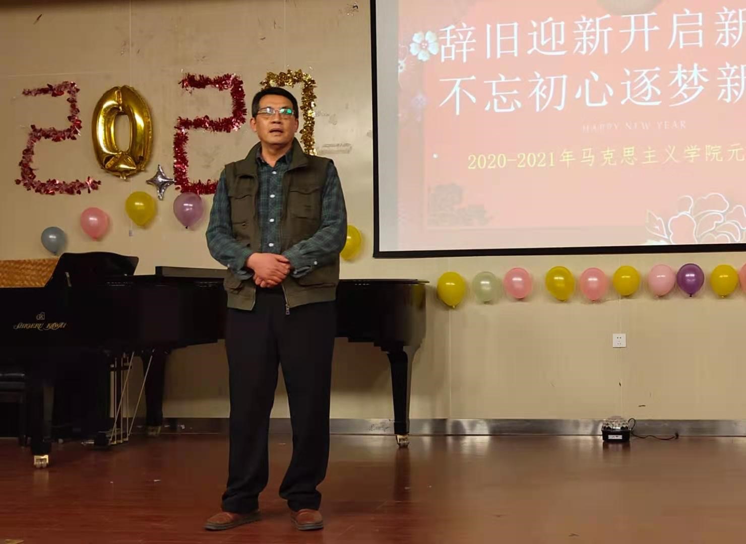 为迎接新的一年的到来,坚定学生在新时代建功立业的理想信念,2020年12月24日,我院在齐鲁师范学院音乐厅举行以“辞旧迎新开启新征程,不忘初心逐梦新时代”为主题的元旦晚会。参加本次晚会的有马克思主义学院党总支书记王晓梅老师,院长刘振光老师,办公室主任刘金玲老师,20级思政一班班主任李敏老师,20级思政二班班主任孟英莲老师,团总支陈赟老师、孙燕丽老师、娄衍群老师,青年教师代表刘英老师、彭珍珍老师,马克思主义学院12级学长现任历史与社会发展学院辅导员孙良运老师,马克思主义学院13级学长现任教师教育学院辅导员邹凤移老师以及2020级全体学生。