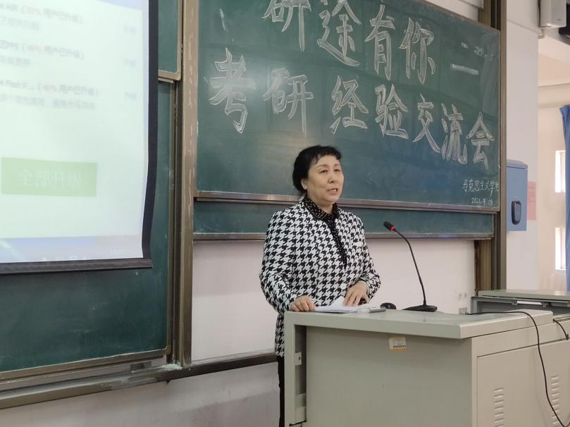 活动末,由王晓梅书记作总结讲话,她鼓励在座的同学们要以2017级学生为榜样,传承我院优良学风,以更加积极主动的姿态投入考研准备工作中。我院学子成功上岸不仅仅是他们自身努力的结果,还离不开我院老师们的辛勤奉献和谆谆教导。本次考研经验交流暨动员大会,密切了我院学子之间的关系,为2018级学子的考研征途打下了一定的基础,有助于马克思主义学院学生们在考研中取得更加优异的成绩。