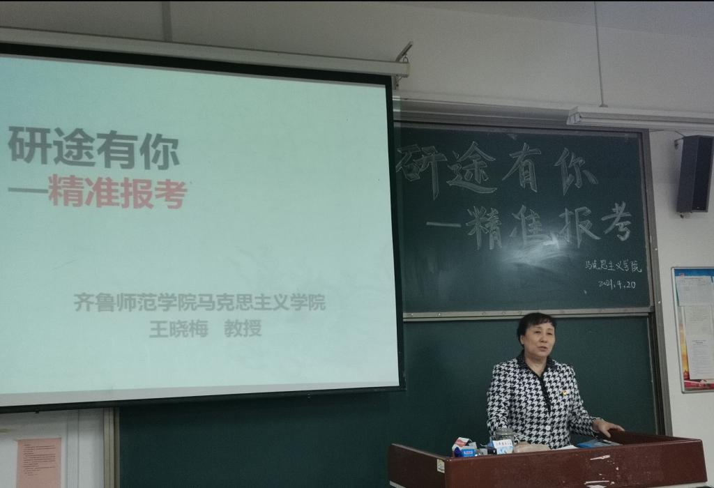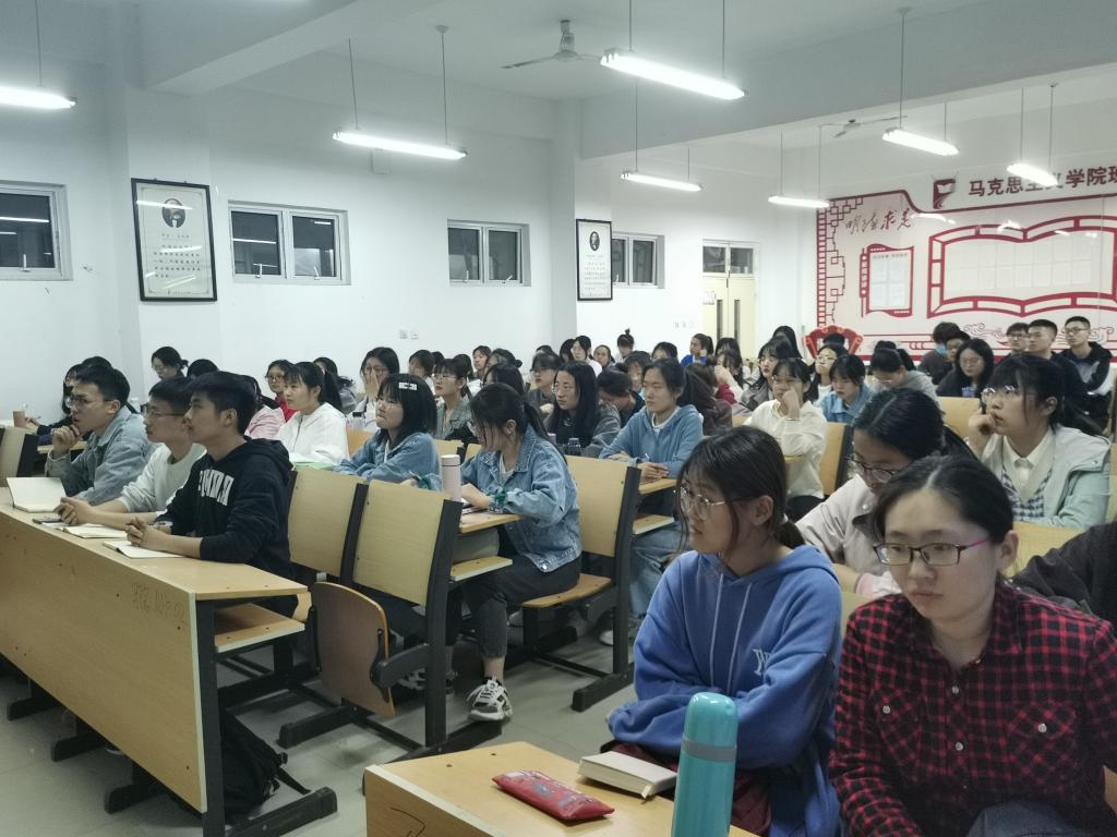 在讲解过程中,王书记为同学们总结了江苏省、吉林省等多省的高校软科排名并讲到了“考研五条线”和“学科教学专硕线”,为同学们分析了马克思主义理论易考院校类别以及易考地区,提醒同学们要根据自身爱好和自身基础报考专硕或学硕。之后,王书记提出了报考的教训和经验。提醒同学们要避开“高报”、“扎堆”等错误做法,同时也传授给同学们一些丰富的考研经验。最后,王书记用“除了非洲赛伦盖蒂草原旱季时,口渴的动物抢水喝的水坑,世界上最危机四伏,你争我夺,血流成河,龙争虎斗的地方就是曼哈顿私立贵族学校早上与下午的接送区。”这句话激励同学们,考研贵在坚持。同学们认真听讲,收获颇丰。