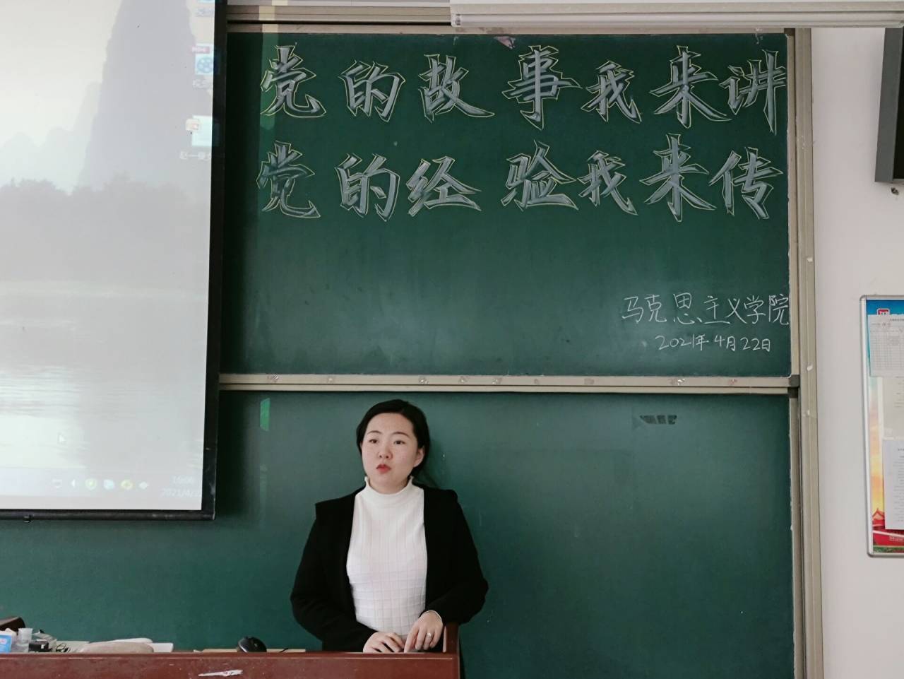 为深入贯彻落实习近平总书记在党史学习教育动员大会上的重要讲话精神,高质量高标准地推进党史学习教育深入开展,为马克思主义学院党史宣讲团选拔出“能讲、敢讲、会讲”的优秀学生作为宣讲团的后备人员,我院于2021年4月22日在二教A310教室举行了以“传承红色基因,赓续精神血脉——党的故事我来讲,党的经验我来传”为主题的党史宣讲团选拔活动。参与本次活动的有团总支陈赟老师、刘英老师以及2017级、2019级、2020级部分学生。