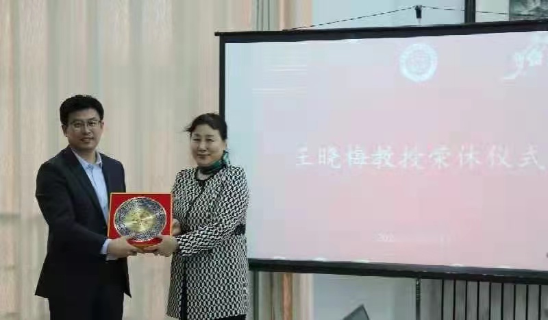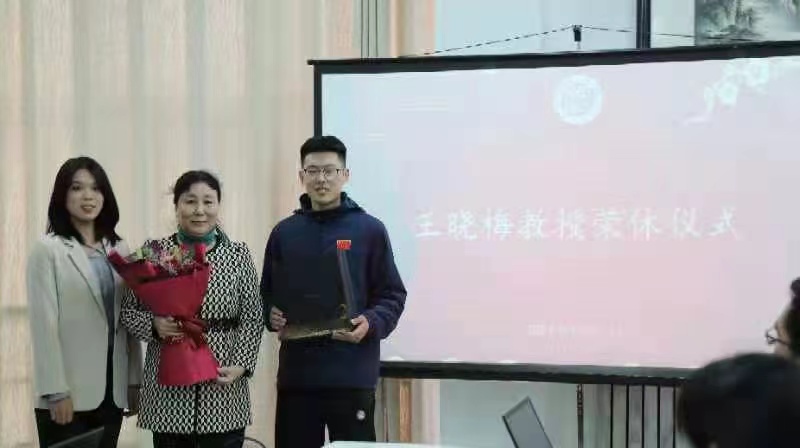 荣休仪式上,学校党委委员、组织部部长李伯伟为王晓梅教授颁发了荣休纪念章。学生代表向王晓梅教授献花,并送上了精心挑选饱含师生情谊的纪念礼物。