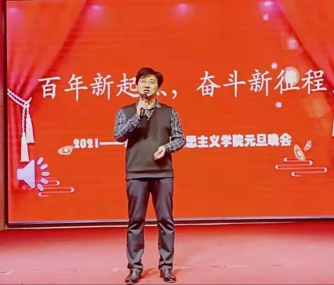 为回首2021年的佳绩,迎接新一年的到来,帮助我院学生在实现中华民族伟大复兴的进程中树立正确理想信念,2021年12月30日,我院于齐鲁师范学院图书馆报告厅举行了以“百年新起点,开启新征程”为主题的元旦晚会。参加本次晚会的有马克思主义学院党总支书记贾龙老师,院长赵立峰老师,马克思主义学院刘振光教授,办公室主任刘金玲老师,2021级思想政治教育本科一班班主任张纪昌老师,团总支副书记王雅文老师,青年教师代表孙燕丽老师、娄衍群老师、刘英老师、彭珍珍老师、孙良运老师以及马克思主义学院2018级、2020级、2021级思想政治教育本科班全体学生。
