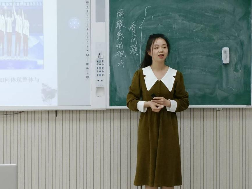 本次教学技能比赛采取固定题目模拟授课的方式进行,初中组的课题是《延续文化血脉》、高中组的课题是《用联系的观点看问题》。在授课环节中,六位参赛选手按照比赛规则先后进行模拟授课。她们语言表达准确生动,教学过程科学合理,教学方法独特新颖,不仅能够充分研读课标、把握教材、联系当下,还精心设计教学内容,以饱满的姿态充分展现了我院师范生扎实的专业知识和良好的教学技能水平。