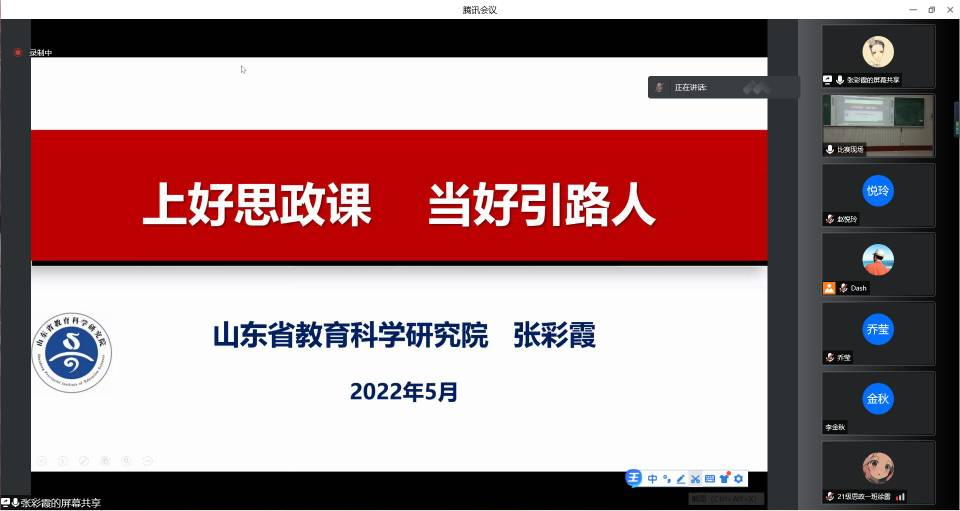 模拟授课结束后,四位评委立足新课程标准和基础教学理念,从教学重点难点处理、教材内容理解把握、教学方式方法合理运用等方面对六位同学的授课情况进行逐个分析,提出了针对性的宝贵建议。随后,山东省教育科学研究院初中道德与法治课程教研员张彩霞老师为我院学子作了题为《上好思政课 当好引路人》的专家报告。张老师认为,我们教学中应该注意教学案例的选择应该科学合理、贴近学生生活,尤其是上好高中哲学课,应该体现哲学思维、展示哲学智慧,可以选取一些马克思主义的经典案例丰富教学,提高课堂的学术含量。张老师还从师范生技能比赛中存在的问题、一节好课的标准、上好思政课的教学理念、教学原则、教学策略等方面为参会同学进行了教学和实践方面的指导,希望同学们遵守课堂教学规范、培养课堂教学特色、形成课堂教学风格。同学们在教学理念、知识拓展、教学方法运用等方面得到极大的收获和提高。
