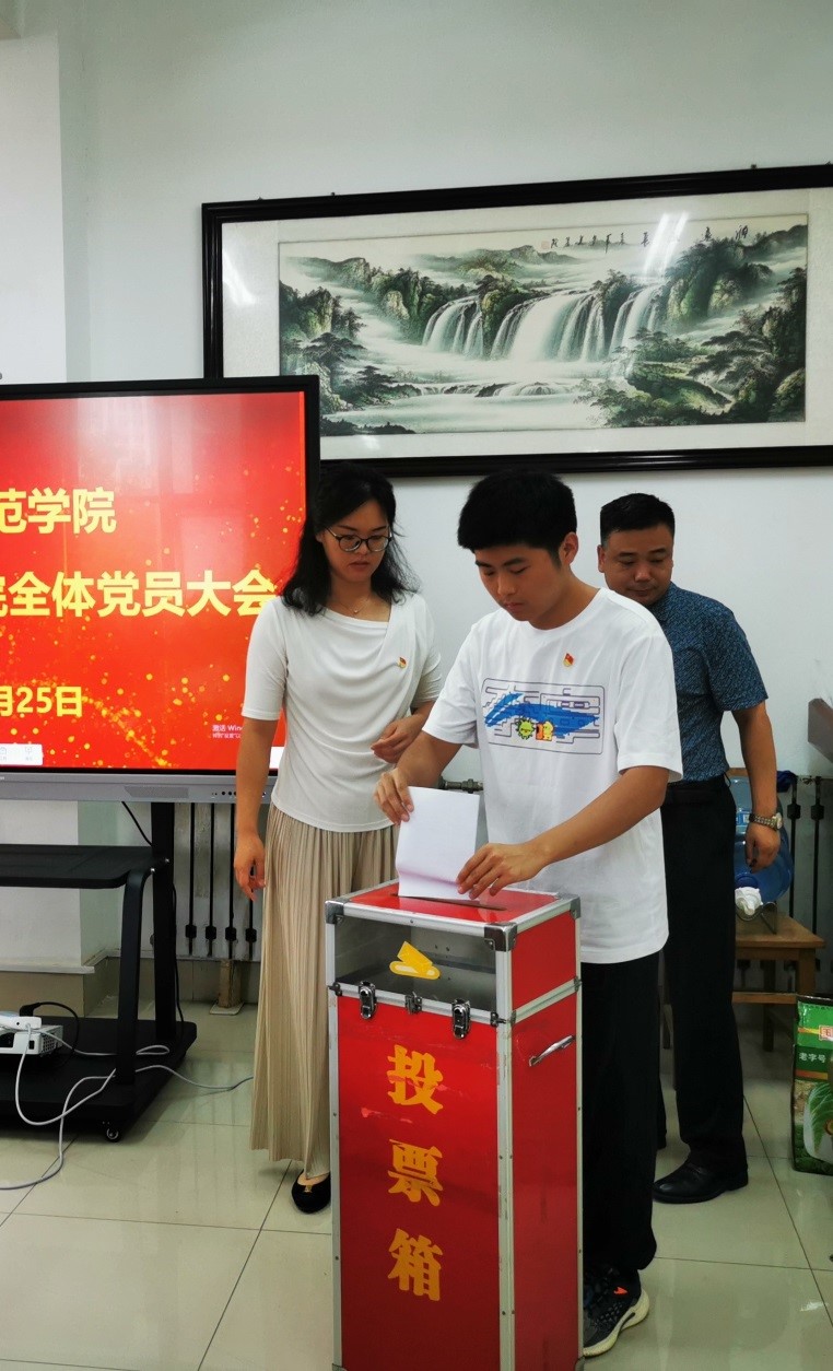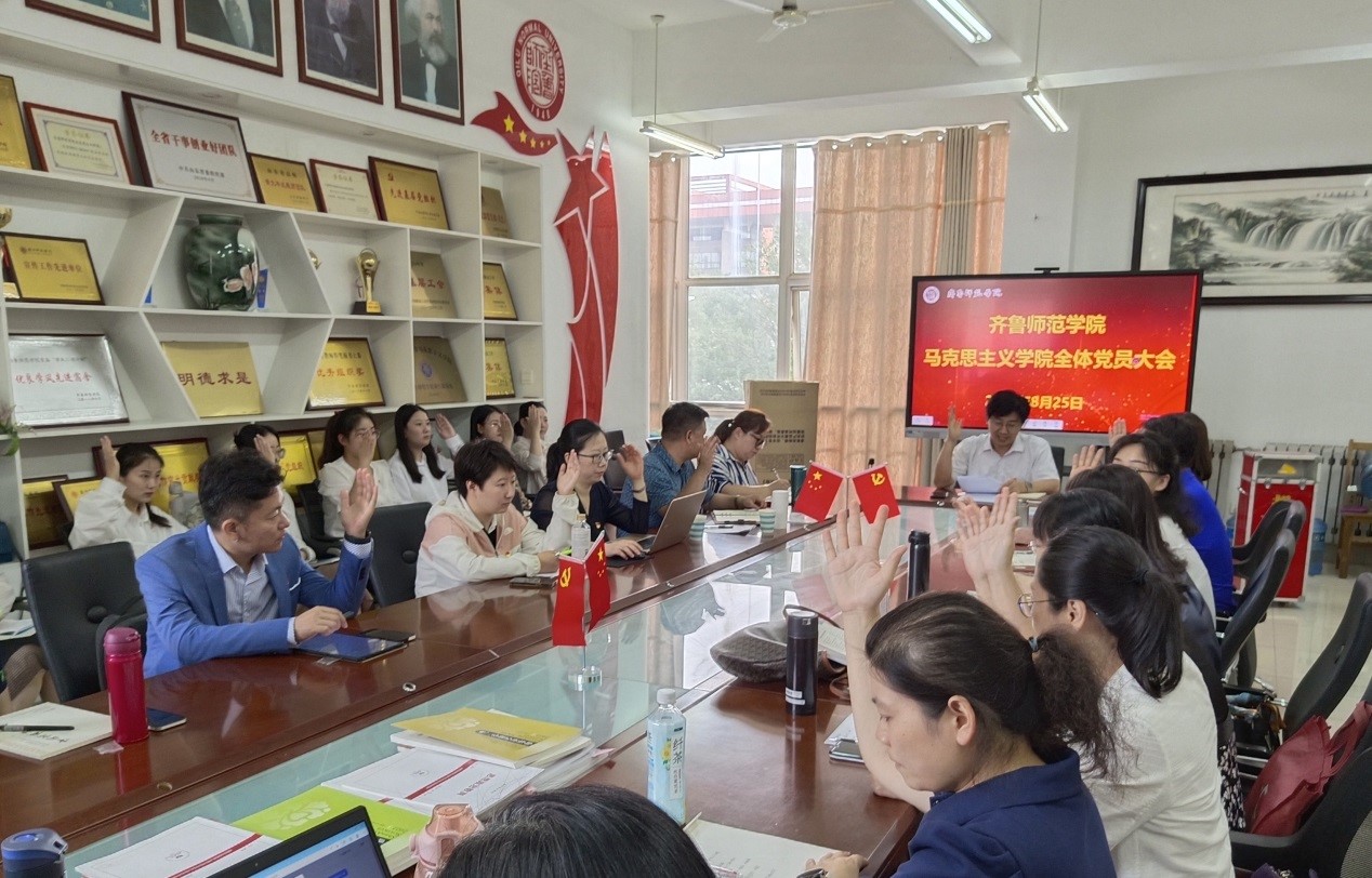8月25日下午,马克思主义学院召开全体党员大会,圆满完成了出席中国共产党齐鲁师范学院第三次代表大会代表选举工作。会议由马克思主义学院党委书记贾龙主持。马克思主义学院全体党员参加。