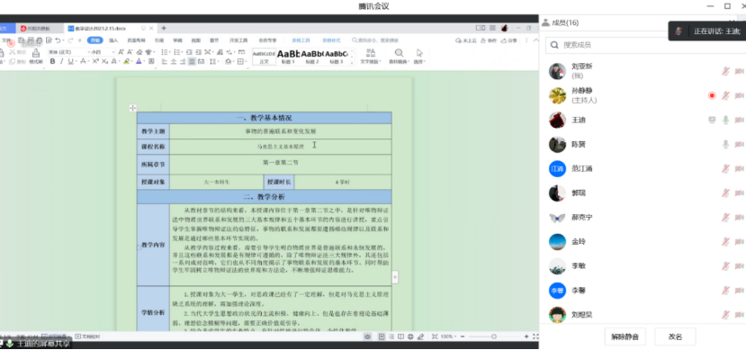 此次备课会就课程大纲修订及专题教学持续改进等问题进行集中研讨,以任课教师分享教学设计为切口突出强化案例教学的重要性,基本形成主讲教师分享优秀教学设计、集体研讨优化教学案例、共建教学资源的产出机制,进一步提高了“原理”课教学质量和水平,扎实推进了马院思政课教学改革和质量提升。