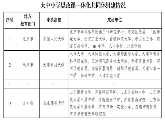 “大中小学思政课一体化共同体”项目由山东师范大学作为牵头单位,齐鲁师范学院、山东财经大学、山东省实验中学、山东师范大学附属小学等大中小学校以及济南市教育局、教研院等在内的10家单位作为成员单位共同组建。项目旨在聚焦一体化建设过程中的难点热点问题,整合力量、共建共享,促进大中小学思政课纵向有序衔接、横向有效贯通,扎实推进全省大中小学思政课一体化建设上台阶、上水平。
